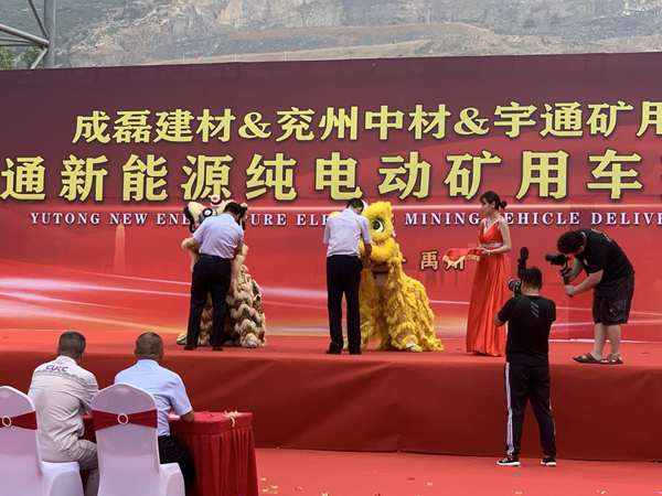 2021年7月17日,成磊建材&兖州中材&宇通矿卡三家企业代表在成磊建材矿区举行隆重的交接仪式,标志着兖州中材建设有限公司矿山开采在践行“绿水青山就是金山银山”的发展理念中迈出坚实一步。 出席本次交接仪式的有:禹州市成磊建材有限公司张景奇总经理及宋朝阳常务副总经理,兖州中材建设有限公司颜景祥副总经理及兖州中材河南省内各项目尚晓峰、宋道明、沈磊、刘国荣及陈茂兴经理,宇通矿用装备销售公司马勇总经理及宇通华北分公司刘宝柱总经理,以及禹州市成磊建材有限公司、兖州中材建设有限公司职工代表。 仪式现场彩旗飘飘,人声鼎沸,场面气氛热烈而隆重。首先,宇通矿用装备销售公司总经理马勇先生致词,马总介绍了宇通客车响应国家政策在新能源矿车领域拥有的先进技术和取得的市场成就,以及对兖州中材建设有限公司、禹州市成磊建材有限公司美好明天的祝福。随后,兖州中材建设有限公司副总经理颜景祥先生上台致词,颜总强调,兖州中材建设有限公司作为中央企业是更具有社会责任感的企业,兖州中材在谋求发展的同时积极贯彻国家政策,在矿山施工中率先使用新能源设备,为构建“资源节约型、环境友好型”社会做出应有的贡献,承担央企责任,担负央企职责。最后,禹州市成磊建材有限公司总经理张景奇先生致词,张总肯定了兖州中材建设有限公司在矿山施工中采用更加安全环保新型设备的工作,期望兖州中材建设有限公司依靠过硬的施工技艺、新型的生产设备、高效的管理模式将禹州市成磊建材有限公司矿山在全省乃至全国范围内树立标杆,打造成示范性矿山。 致词完毕,仪式进入剪彩环节,由禹州市成磊建材有限公司张景奇总经理、宋朝阳常务副总经理,兖州中材建设有限公司颜景祥副总经理、禹州第四分公司尚晓峰经理,宇通矿用装备销售公司马勇总经理、宇通华北分公司刘宝柱总经理共同上台剪彩,随后,由刘宝柱先生代表宇通公司向兖州中材建设有限公司颜景祥副总经理交付金钥匙,并对前来参加仪式的一对舞狮进行点睛,寓意“点石(狮)成金”。 伴随着台上舞狮的激情表演以及空中飘舞的礼花,成磊建材&兖州中材&宇通矿卡交接仪式圆满结束。