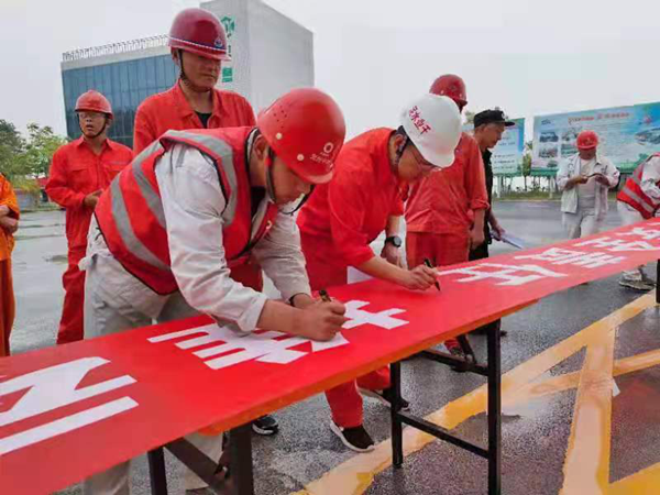 为落实安全责任、推动安全生产,严格执行全国安全生产专项整治三年行动集中攻坚要求,6月1日,马村分公司于千业矿山一期卸料平台举行2021年“安全生产月”活动启动仪式暨宣誓、签字仪式。  2021年6月是我国的第20个“安全生产月”,今年安全月活动的主题是: 落实安全责任 推动安全发展。我们要深入学习习近平总书记关于安全生产重要论述,全面贯彻落实党中央、国务院关于安全生产重大决策部署和集团、中材矿山关于安全生产工作要求,以“防风险、除隐患、遏事故”为目标,扎实推进安全生产专项整治三年行动集中攻坚。利用“安全生产月”的活动这一契机,通过开展安全生产事故警示教育、安全生产应急救援演练、安全教育培训、张贴安全宣传标语等活动,增强全员安全意识,提升员工安全素质,确保公司安全生产形势持续稳定。 此次活动进一步提高各岗位人员对安全工作重要性、艰巨性和长期性的认识,通过安全月的学习,认真做好当前和今后的安全生产工作。充分发挥现场管理人员的监管作用,强化各项安全措施的贯彻落实,及时消除隐患,全面提高安全生产条件,保证分公司安全生产形势持续稳定。