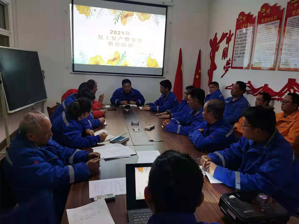 马村分公司在春节假期期间正常生产的同时为响应国家疫情防控政策,大部分员工选择就地过年,一直坚守在岗位上。为了响应公司文件《关于做好节后复产复工安全生产暨安全教育培训工作的通知》及秉持强化思想不放松、牢记安全不懈怠的宗旨,马村分公司于2月23日晚开展“节后安全第一课”,由刘党经理主持,千业水泥矿山分厂刘发亮厂长、千业矿山管理部孙小超安全员、马村分公司全体员工及协作队伍人员共同参与。