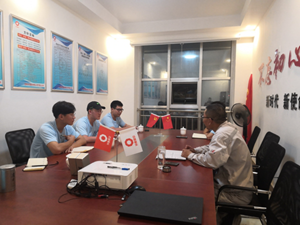 7月12日、13日,宁阳项目部经理助理蔡新辉带领实践团同学们到矿山实地学习测量,为同学们详细讲解了GPS-RTK测量仪器的使用。 14日晚间,济宁泰安党支部书记刘锋为实践团上了一堂“从疫情防控看我国制度优势”主题党课。刘经理从疫情发生后党中央实行的应对举措、全体人民的支持、党员的先锋模范作用等方面为同学们讲述了中国的制度优势,实践团同学们结合其在疫情居家期间的所见所闻谈了心得体会。 随后,实践团同学们与刘经理进行了交流访谈活动,刘经理详细解答了矿山复工复产的具体措施、玉皇堂山及爵山矿区的机械化水平、智慧矿山的发展前景、公司对于员工娱乐活动及设施的建设等问题。最后,刘经理为实践团同学们介绍了公司吸引年轻人才的政策、具体的薪资规定及公司承接的海外项目员工工作、生活情况。