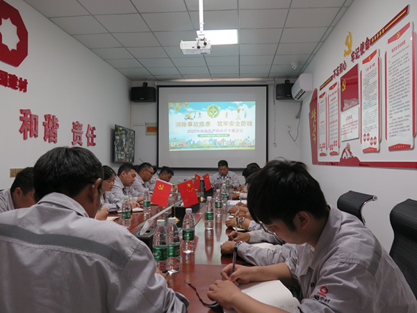 为深入学习领会习近平总书记关于安全生产工作的重要思想和党中央、国务院关于安全生产工作的决策部署。根据中材矿山、中联水泥、兖州中材建设有限公司和地方政府关于2020年“安全生产月”活动要求。6月2日下午,滁州分公司召开2020年“安全生产月”活动启动大会。 会上,公司执行经理张作钢和生产负责人分别进行活动方案传达和安全月期间的人员部署工作。指出在确保新冠疫情防控常态化的条件下,紧跟全国第19个安全活动月“消除事故隐患,筑牢安全防线”的主题,结合分公司实际情况,深入开展系列活动。要求各部门充分合作,人人积极参与,推动各项活动顺利实施,确保安全月活动取得成效。