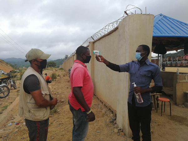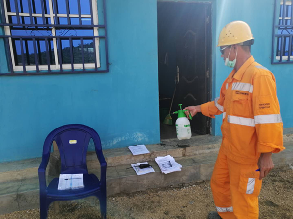 自新型冠状病毒肺炎疫情发生以来,尼日利亚项目部领导按照公司统一安排,高度重视疫情防控工作,加强领导,根据当地疫情形势,把责任抗在肩上,抓在手中,采取有力措施,确保疫情防控和生产工作顺利进行。坚持每天督查安全,督促生产;实时通报国内疫情防控情况,及时了解尼日利亚的疫情动态,加强疫情防范措施的宣传,坚持涉外无小事原则,积极传播正能量。同时,密切关注职工思想动态,解决职工实际困难,稳定队伍保证生产;项目部想尽各种方法联系购买渠道购买防护口罩、消毒液、免洗手消毒液医用酒精等,对宿舍,办公室,工作场所等进行定期消毒。食堂增加每日的肉品供应量,增强职工的免疫力。营地大门口实行封闭式管理。多项举措做好疫情防控和队伍稳定工作;同时项目部制定和完善各项应急预案,根据疫情的发展情况,适时启动应急预案,做出相关决策。 主要措施: 1、项目部对外部进场人员实行严格准入制度,对符合疫情防控要求的人员准予进入工地。 2、对工地内工作人员(包括当地员工),建立健康监测制度,每天两次对全部人员进行体温测量和登记,发现发热特别是伴有咳嗽、咽喉肿痛等状况身体异常人员,立即采取隔离、送医等应急处置措施。  当地员工进场前体温检测  当地员工洗手液消毒 3、做好宣传教育工作,派发资料及宣传疫情防控知识,加强个人卫生教育。  新冠疫情知识宣传教育   4、对配送材料、物资等外来人员,不得车辆进场后,车上人员出驾驶室,货物、物资有项目部安排工地内人员接受和装卸,并做好安全防护措施。  对外来材料及车辆消杀 5、做好防范措施,车间、矿区配备测温枪、消毒液、口罩等应急防范物品,保持宿舍空气流通,落实卫生消毒制度,切实做好施工现场卫生管理、个人卫生防护,及时开展的病媒生物防治与消杀,有效降低病媒生物密度。  接送员工上下班车辆消毒  对考勤等记录消毒  对现场工棚消杀 防疫物资储备  生活物资储备 6、安排专人实施24小时值班和项目部领导带班,并保持通信通畅。 7、实行日报告和零报告制度,做到早发现、早报告、早隔离、早治疗,分层隔离,及时落实。 |