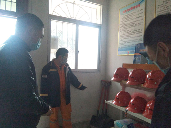 施工现场检查完毕后,县应急管理局到办公区域检查了疫情防控相关资料、疫情防控物资储备及防洪物资储备等。
