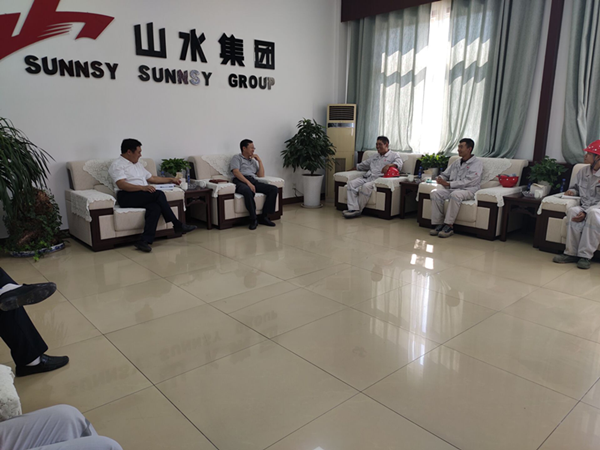 苏逵听完介绍后,对分公司工作给予肯定,对与业主间亲密的工作配合给予好评。 参观结束后,苏逵一行在平阴山水接待室召开了“不忘初心、牢记使命”主题教育民主座谈会。分公司经理助理曾令彬、职工代表任增虎、学生代表米广宇代表分公司职工参加。苏逵表示,这次来到平阴分公司,就是想听一听大家对企业的想法与意见,本着为职工解决问题的目的而来。苏逵同与会代表对职工在分公司工作情况、生活条件、薪金待遇、个人家庭等多个方面进行了详细的交流,听取了与会代表的意见和建议。并对职工关心的问题与公司柯总及王书记交换了意见。 最后苏逵要求,分公司在工作上要精益求精,充分体现作为央企的工作作风与实力。