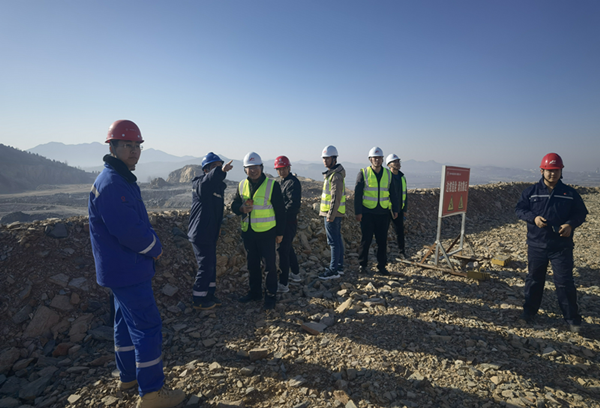 分公司人员陪同专家组到矿山进行现场审查,为专家介绍矿山施工情况。