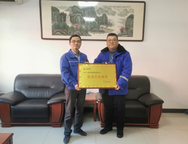 11月25日,为表彰兖州中材神头分公司对朔州金圆水泥有限公司超额完成年度生产任务做出的积极贡献,金圆水泥副总经理王魁向兖州中材建设有限公司神头分公司颁发了“优秀合作伙伴”的荣誉奖牌。