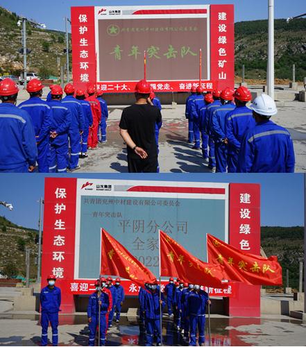 按照共青团中央下发(中青发【2022】5号)“喜迎二十大、永远跟党走、奋进新征程”主题教育实践活动的通知要求,2022年5月2日,在公司和公司团委领导下,兖州中材建设有限公司平阴分公司组织项目青年骨干,在平阴山水矿山召开平阴分公司“青年突击队”成立大会。