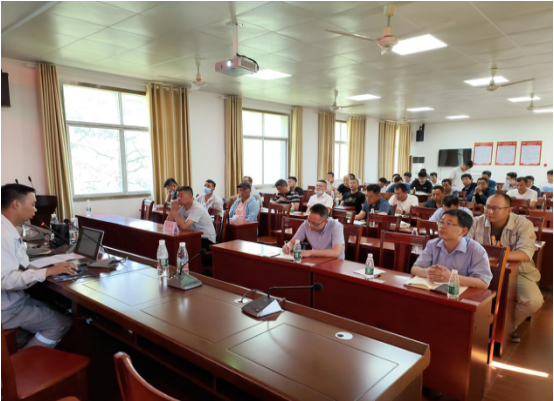 现场观摩结束后,全体人员来到爱民乡政府,分公司副经理肖波、夏晓阳就矿山爆破安全、边坡控制爆破技术及现场安全施工管理等方面对全体参会人员进行培训。