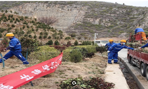在植树现场中,迎着朝阳,大家早早地来到了植树地点,热情高涨、干劲十足的投入到植树活动中,大家自发组成三五人一组,分工协作,副经理杨宇说道:“树苗植于土,绿色矿山理念植于心。”经由每一位职工的双手,颗颗树苗种下,勾勒出一幅美丽的早春景色。在大家辛勤劳动下,一排排的冬青树苗扎根沃土,昂首挺立,展现出勃勃生机。