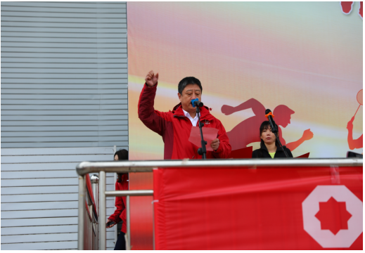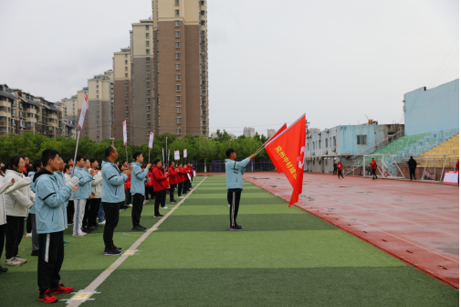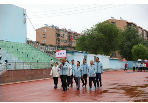 (兖州中材党委委员、副总经理颜景祥致词) 踏着激昂的运动员进行曲节拍,运动员们精神抖擞、斗志昂扬,排列着整齐的方阵,在旗手的引领下,喊着响亮的口号,依次有序地走过主席台。