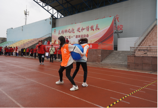 五、背对背夹球跑 不长不短的距离 需要的是全身心的投入 这是速度与毅力的结合 这是期望与完梦的接力 此时此刻 你们处在最风光的时刻 只要跑下来 你们就是英雄