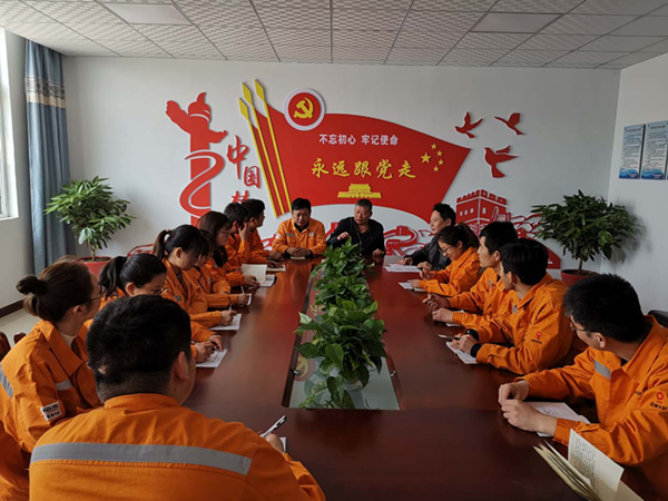 随后,王书记组织分公司全体员工召开了党建推进工作会议,他主要从三个方面指出: 一、要扎实推进”两学一做“学习教育常态化制度化,认真抓好党建工作。 要不断加强政治理论学习,党员干部不仅要认真学习十九大精神和新《党章》等知识,做好学习笔记、撰写心得体会,认真学习贯彻习近平新时代中国特色社会主义思想,树牢”四个意识”、坚定”四个自信”,真抓实干,担当作为。还要不断提高业务水平,把所学知识应用于工作实践,知行合一,创新工作方法,提高把握和驾驭全局的能力。 二、要尽职尽责,全面完成各项工作任务 要建立基层党建工作责任制,坚持党建工作与业务工作一起抓;健全完善基层党支部工作制度。坚持“三会一课”、主题党日活动、党风廉政建设、党员评议、党组织活动等工作健康有序开展。 (1)工作要积极配合,主动协调,党员干部教育、培训方法要不断创新。 (2)夯实基础,不断提高党建工作整体水平。抓好基层党组织班子建设,坚持每年开展“争先创优”活动。并要求大家在平时的工作、生活、学习中要时刻以党员标准来要求自己的言行举止,抓基层党组织队伍建设,提高党员政治素质。 (3)丰富载体,不断增强党建工作的凝聚力 三、要不断增强廉洁从政的自觉性和坚定性。坚持以共产党员的标准严以律己,增强自律意识,坚持廉洁从政。 会上,李增光部长也进行了发言,他说今年是集团党建工作推进年,要求分公司要认真落实好公司2019年度工作会议要求和党委工作总体安排,要求党员干部合理利用好“灯塔党建在线”和”学习强国”学习平台,加强党员干部理论学习,规范主题党日活动;进一步统一思想,担当作为,很抓落实,努力创建好分公司党建书屋。期待大家在日常工作、生活的方方面面都随时保持朝气蓬勃、努力向上的良好精神状态。 会后分公司经理颜景祥说,面对现场复杂的生产形势和不利生产因素,他相信分公司全体员工一定能够做好党建和安全、生产工作!知行合一,希望大家能以高标准、高要求、不走形势、认真执行落实好,不忘初心,努力工作,为推动公司高质量发展不断迈上新台阶。