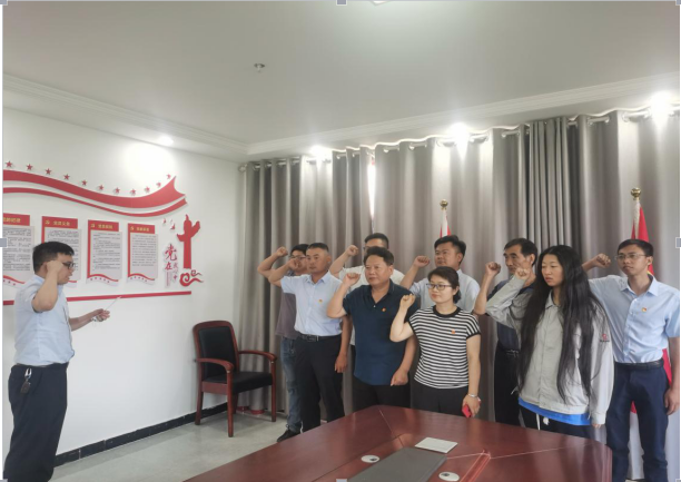 会议最后,党委副书记何芳训、党群部部长李增光同河南片区党支部党员重温入党誓词,不忘初心牢记使命砥砺前行,共同托起中华民族伟大复兴的“中国梦”。