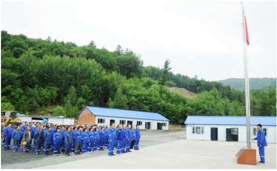 2022年7月1日, 兖州中材和龙分公司在Ⅳ号矿组办公生活区举行“升国旗、唱国歌”仪式,风展红旗如画,砥砺初心如磐。