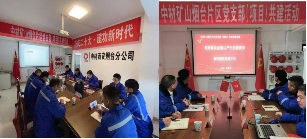 为全面贯彻落实新时代党的建设总要求,根据中共中材矿山建设有限公司委员会下发《关于开展中材矿山建设有限公司党支部(项目)共建的通知》,2022年12月9日,兖州中材栖霞分公司、莱州分公司与中材西安烟台分公司联合开展党支部(项目)共建活动。