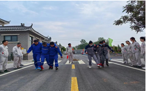 第二项比赛是考验参赛人员协调配合能力的三人三足,江雪野、王晓琦、吴憾代表兖州中材禹州第四分公司参赛,三人互相配合,50米的距离没有发生失误,完美体现了三人之间的默契。