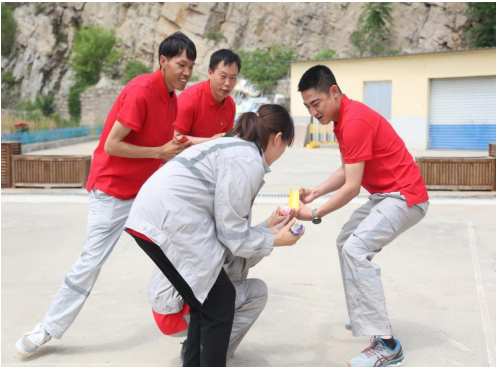 参观施工现场结束后,共建团体开展了背靠背双人运气球和接力运球等生动活泼的趣味活动。赛场上,大家积极参与,气氛非常活跃,大家赛出了水平,赛出了风格,赛出了友谊,以更加饱满的热情和昂扬向上的精神风貌投身到工作中去。比赛结束后,侯相钦为参赛人员发放了奖品并合影留念。