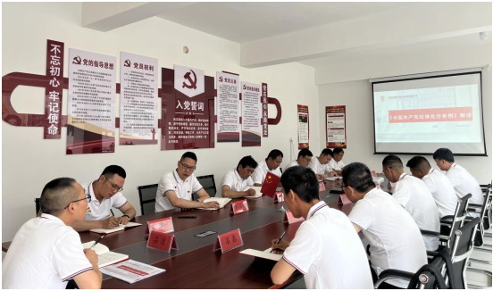 首先,西南片区党支部召开支部党员大会,集中学习《中国共产党纪律处分条例(2024年)》新修订版,就修订的主要内容和鲜明特征、对推动全面从严治党的意义、抓好贯彻落实等方面做出详细解读,并强调在项目经营中,对规章制度和廉洁纪律要严格遵守,着重提出对“高压线”、“红线”问题不可触犯。